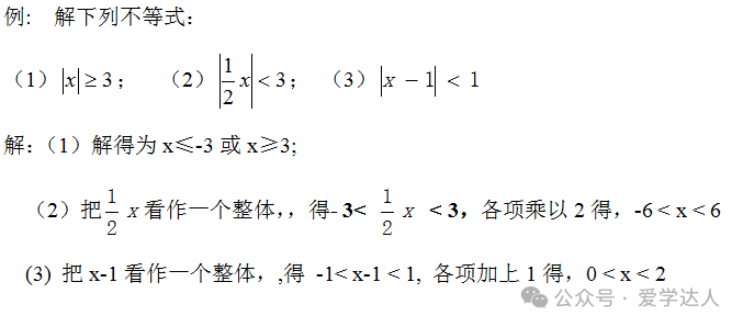 在绝对值符号内含有未知数.我们把绝对值符号内含有未知数的不等式叫做含有绝对值的不等式.例:|x-3|<2,|5x|>10