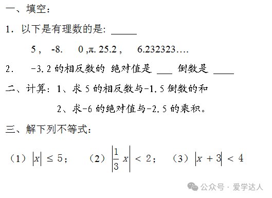 ①符号相反的两个数称为相反数。(例:如3.5、-3.5)